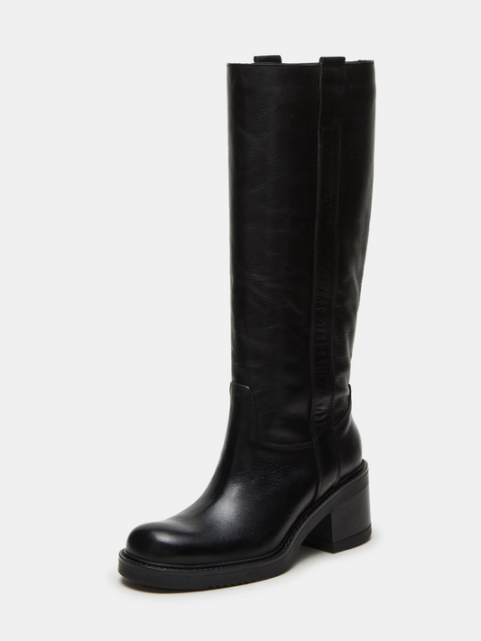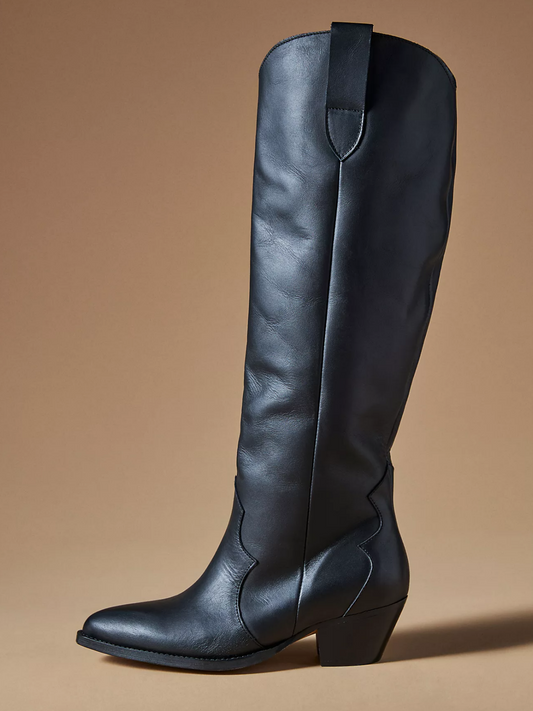 Black Vegan Leather Round-Toe Wide Calf Knee High Western Boots