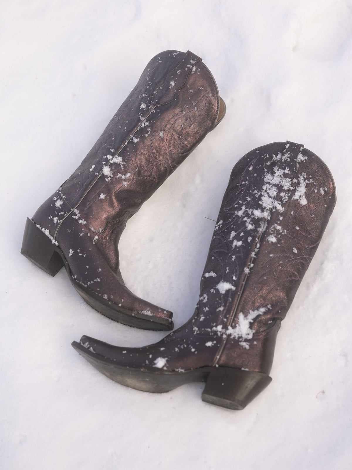 Metallic Pewter Snip-Toe Embroidery Wide Calf Knee High Cowgirl Boots